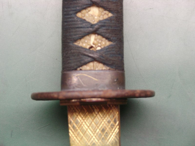 あと柄頭(持ち手の先端)にはコオロギが彫られてました。鞘もリコーダーの色みたいな